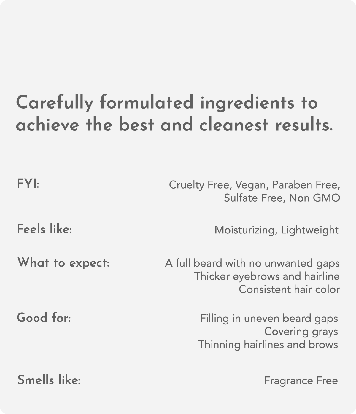 Even out the color and volume of your beard, blend away grays, define sideburns, or sharpen your hairline.