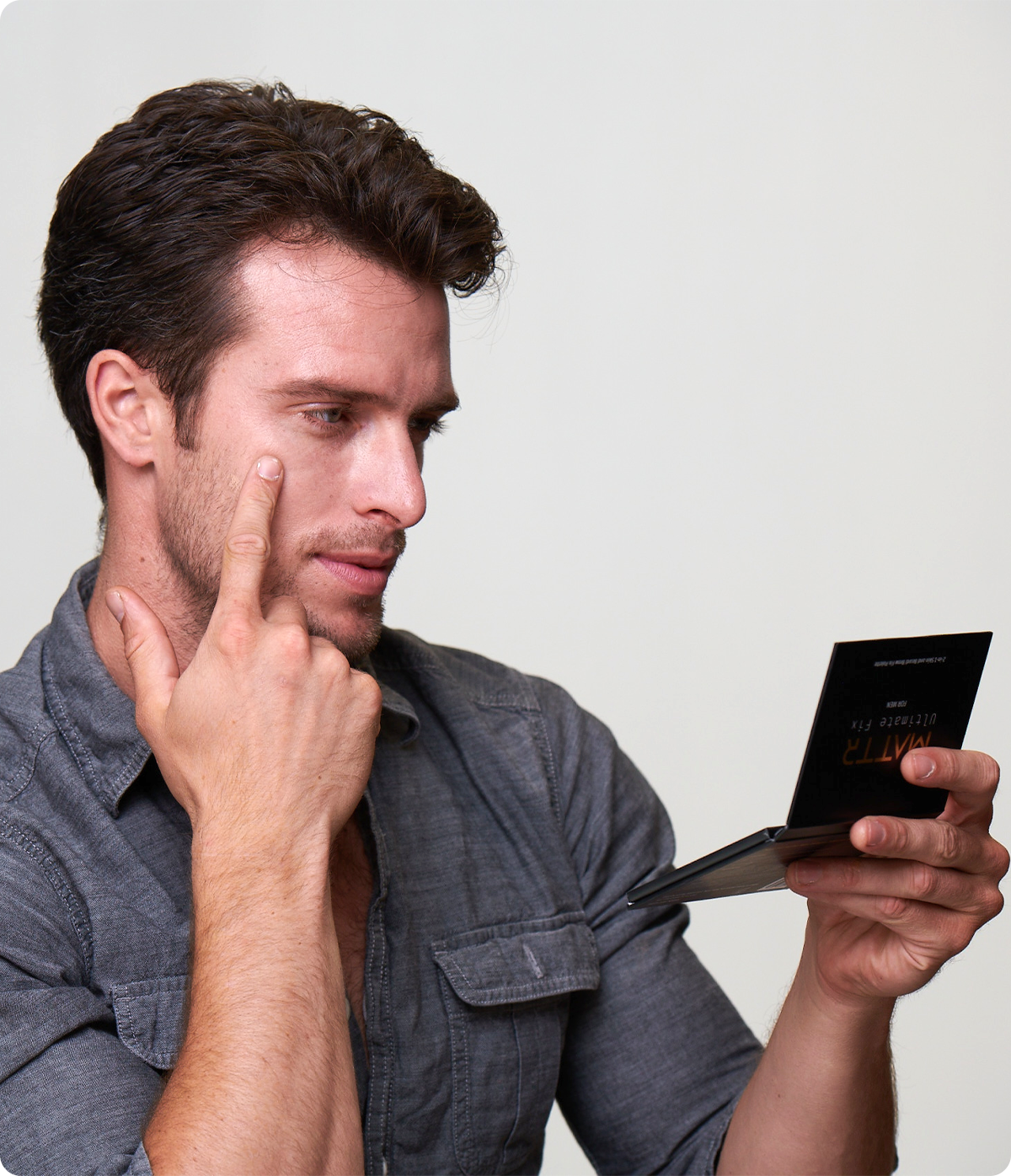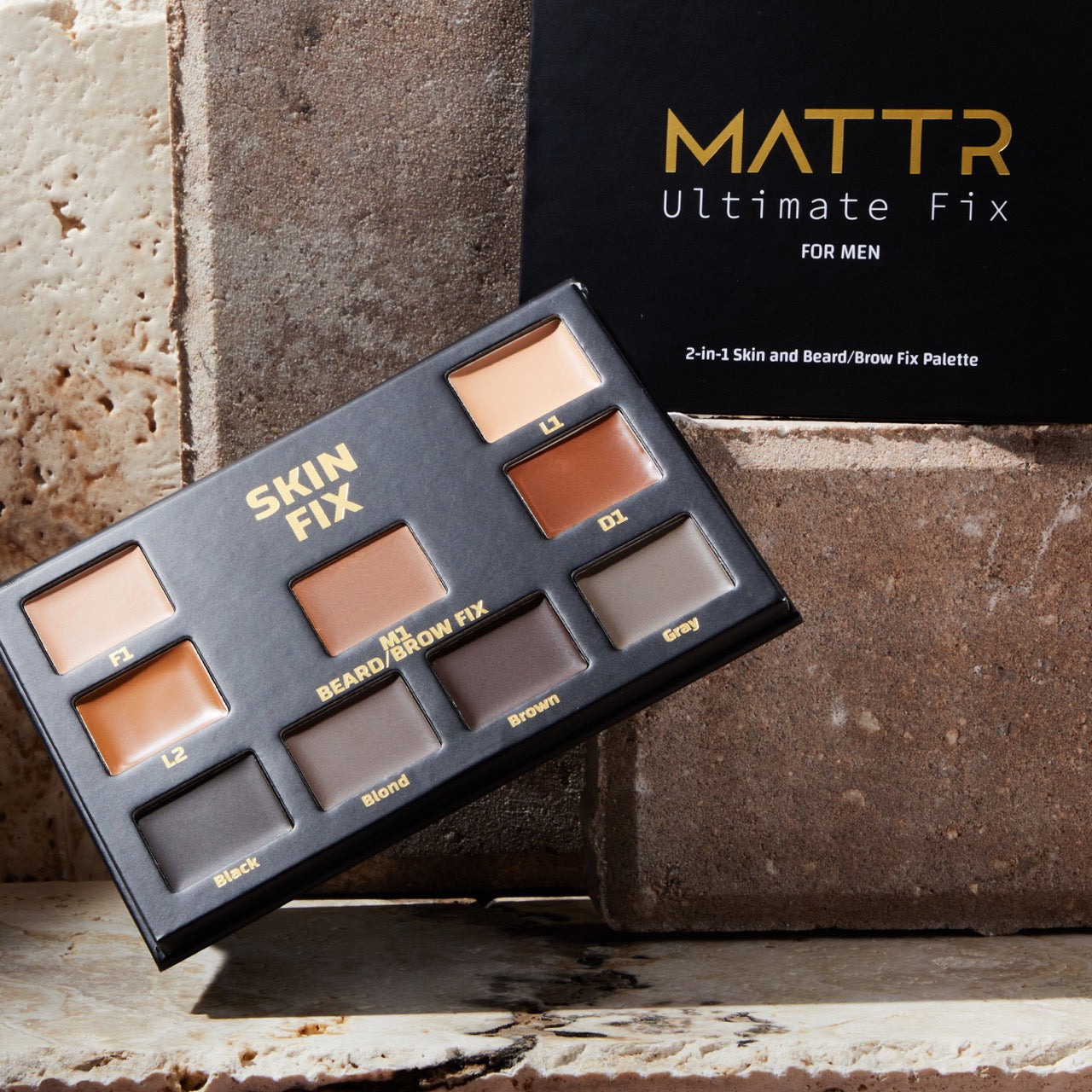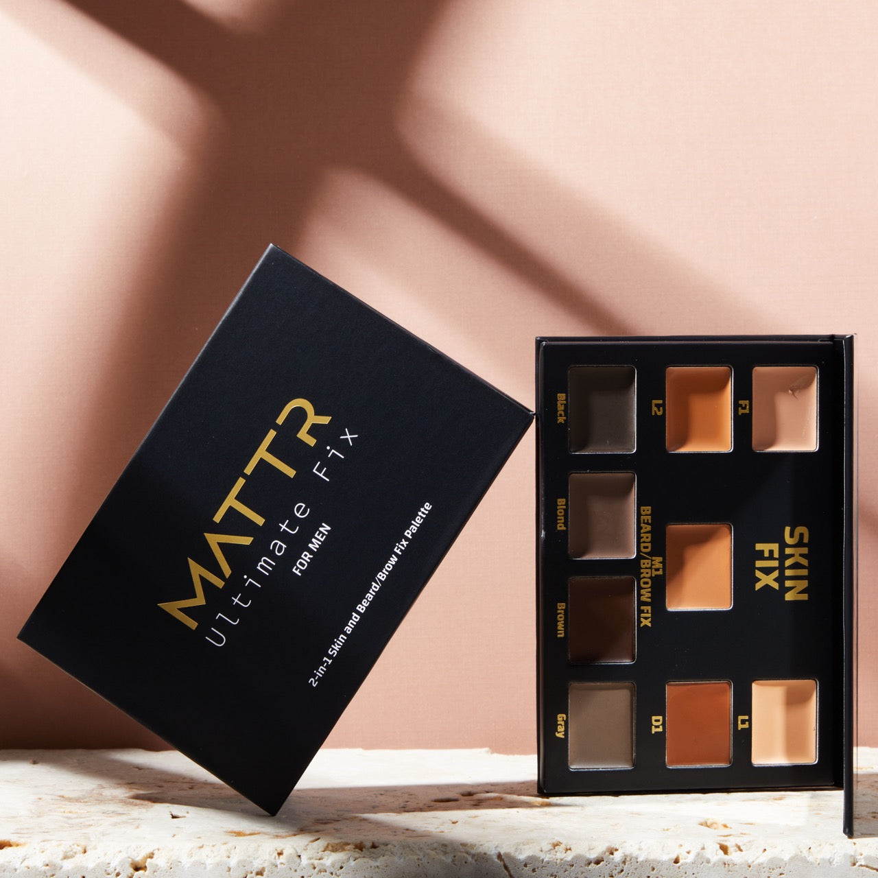Not sure what your shade is? Purchase our 2-in-1 palette that offers all shades of concealer and beard/brow fix. Sleek and compact for easy travels.