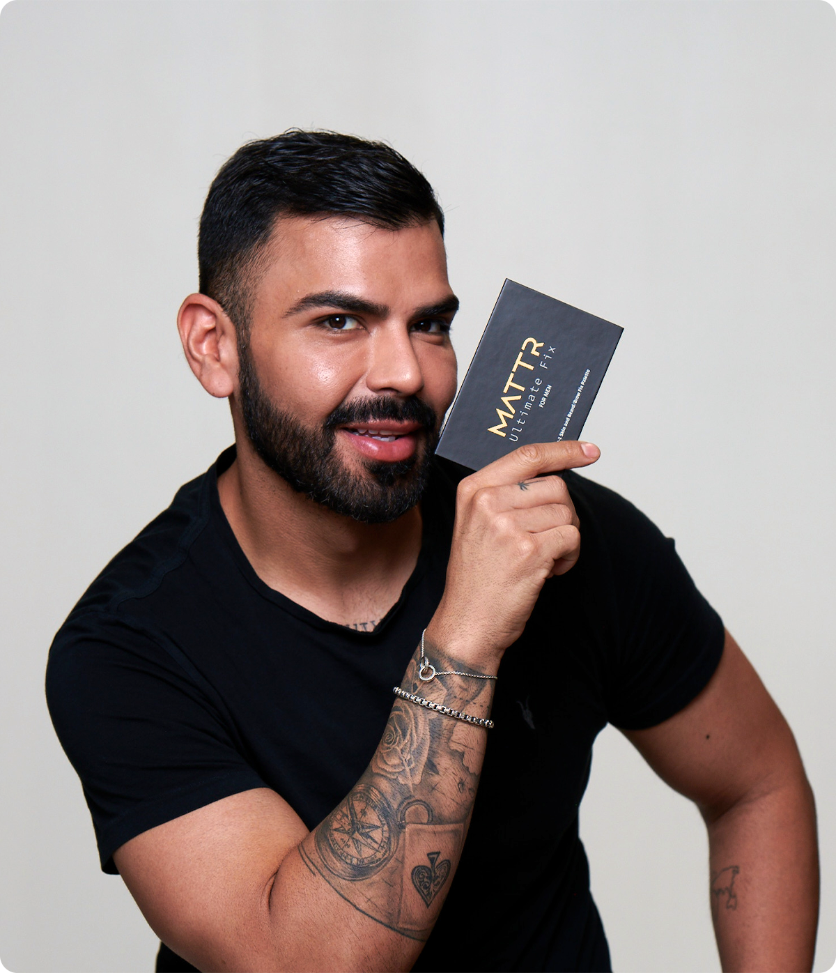 Not sure what your shade is? Purchase our 2-in-1 palette that offers all shades of concealer and beard/brow fix. Sleek and compact for easy travels.